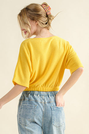 Yellow continues to perform strongly across plus size categories and this textured take on the trend gives boutique owners something with more staying power than a basic solid tee. The jacquard fabric photographs beautifully, which means stronger sell through on social media and in flat lay content. Boutiques that carry this piece consistently see reorders because customers respond well to color and texture combinations that feel special without requiring a high price point commitment.
